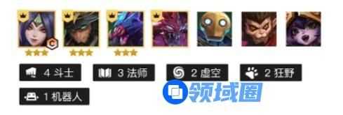 3-2拉六人口,这时候上4斗2狂野,先不要上3法,卡着利息追三星,追三优先级:命运之手>青丘灵狐>虚空遁地兽>仙灵女巫>机器人,这个阵容有5张2费卡可以追三,2张三星卡后可以上7人口补出完整羁绊继续追三。