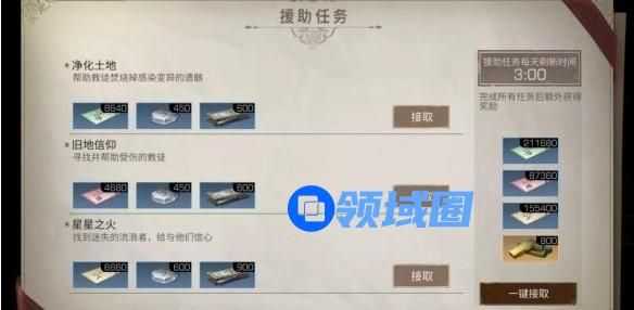 2.援助任务明日大陆事务繁杂,各地都存在着需要幸存者协助的NPC。根据地图上的标记,找到援助任务发起人接取任务,完成任务后会获得大量熟练度奖励。