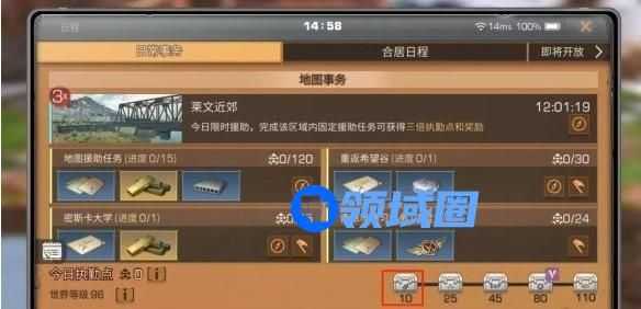 3.每日区域行动当采集和战斗等级到达10级时,幸存者们可参与密斯卡大学1星,通关后将可获得大量战斗熟练度、金条、新币、技能点,随着各等级的提升,可参加的区域行动也会越来越多。