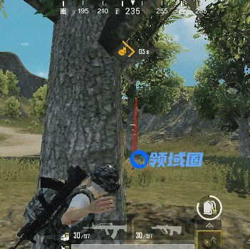 在山地地形里,对手常常会躲在树或者石头后面不出来,卡我们的位置。