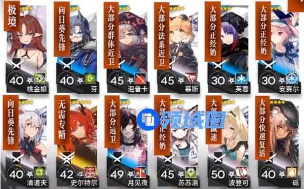 极境/桃金娘、常规先锋*2、远卫*1、群攻近卫*1、法卫*1、单奶*3、减速辅助*1、快速复活*1