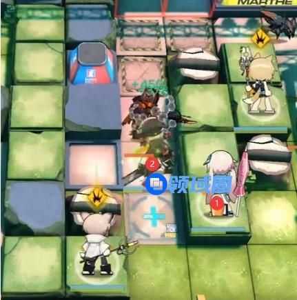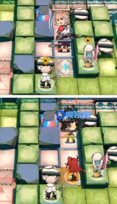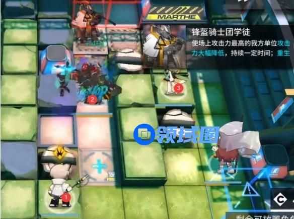 2.左上角单奶(向右),然后将防御格上的先锋换成法卫准备打大盾。随后右侧部署史尔特尔,先锋2号换远卫。