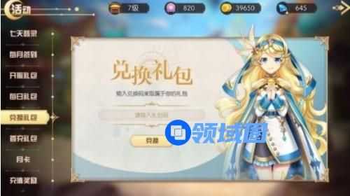 活动-兑换礼包中输入兑换码领取。