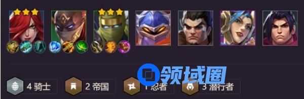 2、阵容分析:四骑士可格挡大部分伤害,还有2帝国真实伤害输出到爆,三潜行者切后排,非常完美的阵容。