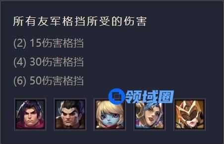 当同时拥有二个骑士、四个骑士、六个骑士的时候羁绊效果分别为:所有友军格挡减少15点伤害、格挡减少30点伤害、格挡减少50点伤害。(如下图所示)