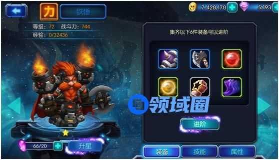 当英雄全身装备穿齐后,即可进行进阶!进阶后的英雄品质将提升,各项属性都将得到大幅提升,并获得新杀伤力更大的新技能。