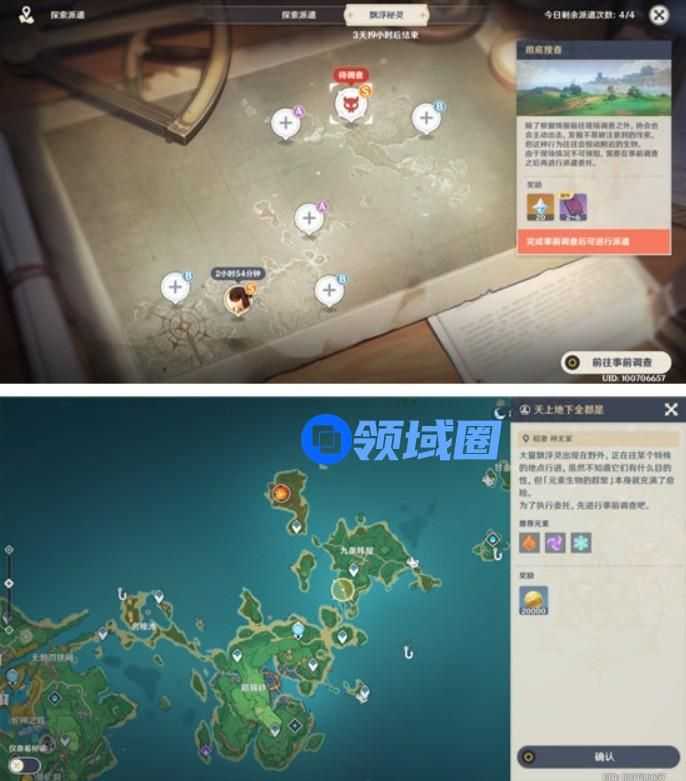 全部点亮后漂浮灵出现,全部击败即可完成该天调查(记得回去把S级委托派遣了,昨晚我就差点忘记了,还好睡前检查了一遍)。
