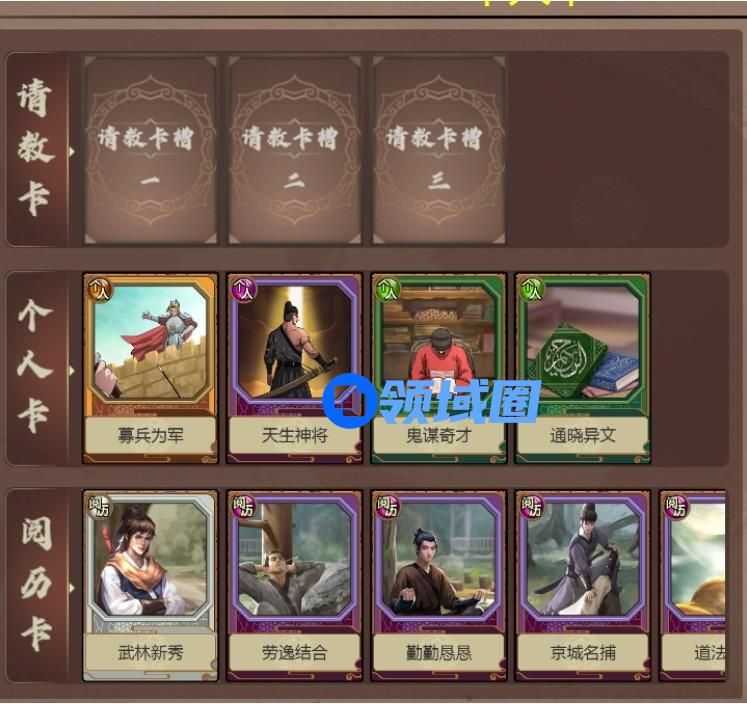 5、寻找名臣,请教以下卡牌:祖传剑法,武学世家。