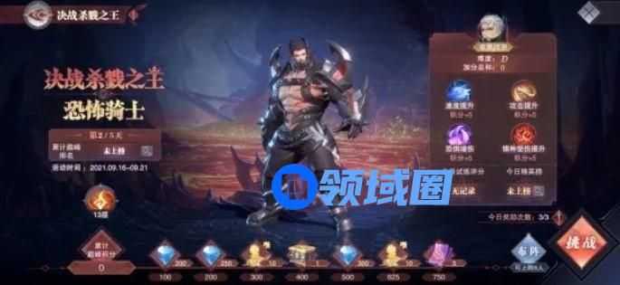 ※每天开放的挑战都有不同的杀戮进阶内容提供选择,杀戮进阶会使敌方获得增强,提高挑战难度,因此在挑战战斗结束时可以获得额外的积分