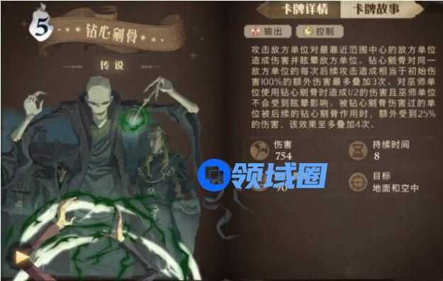 钻心剜骨为主要攻击卡牌,5级时伤害为754点;
