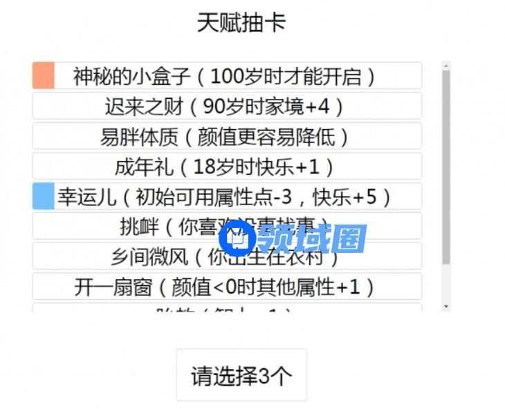 另外,再次重开,天赋可以选一个,下辈子还能抽到