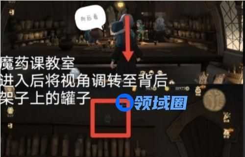 城堡内部→魔药课教室→进入后将视角调转至背后→架子上的罐子