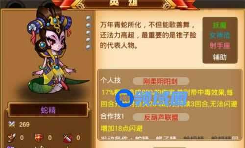 估计因为是反派,所以才是紫色的,她的技能实在很强,当你面对防御超高敌人时,她可以绝对保证你的输出,而跟这只蛇精组成合作技的,都是狠人,例如女娲,所以,如果你遇到她,一定要留下她,不然你会后悔的。