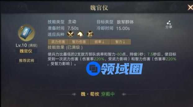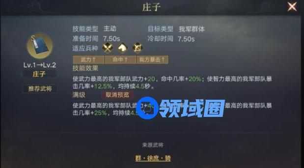 使己方武力最高的部队武力+40,命中几率+40,使智力最高的部队暴击几率+25%