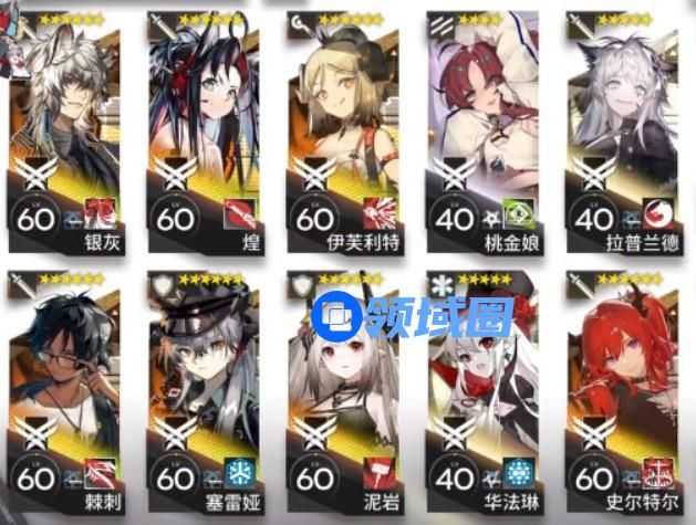 需求干员:煌、棘刺、伊芙利特、塞雷娅(1技能)、泥岩、桃金娘、拉普兰德(2技能)、史尔特尔、华法琳(1技能)