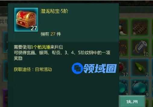 目前在潜龙秘宝中就只可以开出这些道具的奖励,而每次开启的话需要消耗一个锤子道具,这个道具可以购买,也可以通过一些挑战来获得。宝箱的获取可以通过日常玩法,角色等级对于阶段有一定的影响。