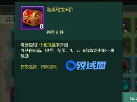 潜龙秘宝在游戏中是有阶段设定的的, 随着阶段的提升,奖励品级以及数量上是有一些提升的。目前是有一阶到8阶这个设定,8阶的话在获取难度上还是有一些难度的。