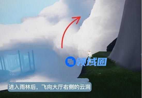1、进入雨林后,飞向大厅右侧的云洞里。