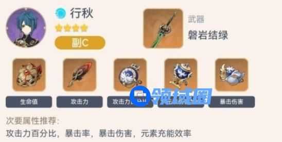 圣遗物首选【绝缘四件套】,因为行秋的元素战技同样有不俗的伤害,二水二宗室也是不错的选择,按需求选择充能沙或者攻击沙(深渊12层实战仅需150左右充能就做到无限续航),水伤杯。