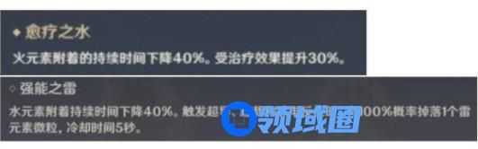 【匣里灭辰】的武器特效是对水元素附着敌人有伤害加成,由于水雷共存的关系,该阵容基本全程是水雷覆盖,可以一直吃满效果,而雷神独特的协战能力(后手上雷),元素精通也能提高感电反应伤害。