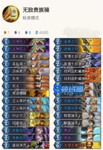 其次奥秘选择中逝者之剑可以压缩牌库,挂奥秘打节奏也同时让我们更快的抽到两张贵族。打法思路是起手找逝者之剑以及农夫、正义保护者等等各种低费随从,前期按照奥秘铺场骑士正常过牌抢血就可以了,如果开局摸到贵族可以留在手里等减费或者BUFF,等到手里组件齐了之后就可以启动了。