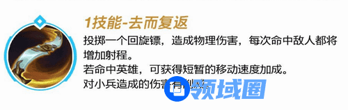 投掷一个回旋镖,造成物理伤害,每次命中敌人都将增加射程。