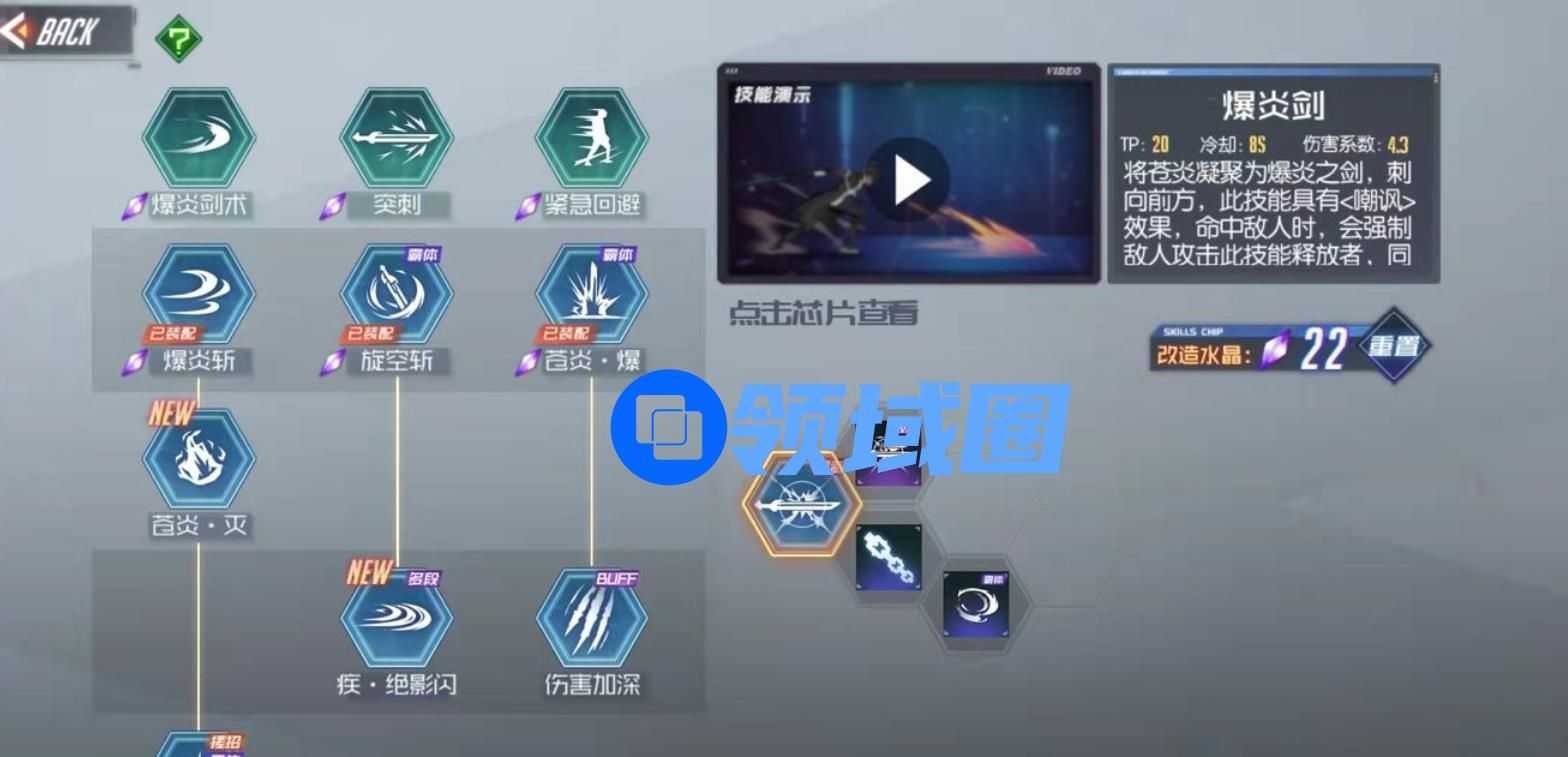 将‘瞬影斩’改造为‘旋空斩’,将目标击飞并进行斩击,然后会将其拍到地面,有一定概率能挂燃烧,还能给自己加盾,很不错的小技能