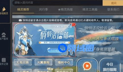 3、第三步,在游戏精灵主页大厅中可以看到【悄悄话信箱】活动,点击有感叹号的图片即可查看别人是否给自己留言了。