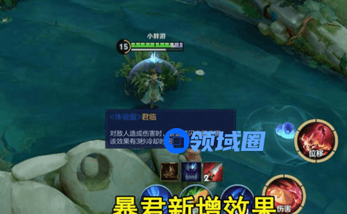 王者荣耀君临效果是对英雄造成22(+0.018*英雄等级)Ad + 0.06(+0.0045*英雄等级)Ap的闪电链法术伤害,对野怪造成1.2(+0.096*英雄等级)Ad + 0.33(+0.024*英雄等级)Ap的闪电链法术伤害,冷却时间3秒。需要指出的一点是,君临效果的获得仅有在击杀10分钟前的暴君后才会获得,因此争夺暴君很重要,可以关系到团队整体的输出效率。