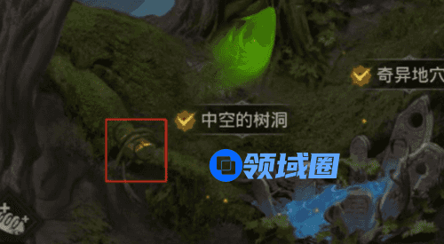 1、首先玩家可以前往当世的世界树图,在中空树洞门口会有个雷宝箱。