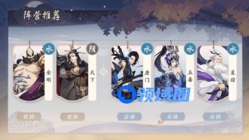 1、首先我们这套五毒阵容主要就是依靠叠加毒来打伤害,主要输出位置就是后排三个唐门(水),五毒(水),星宿(水)。