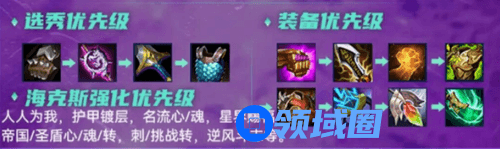 这套阵容算是比较吃海克斯强化的,特别是羁绊类强化,名流心/魂、人人为我、帝国/圣盾心/魂/转,刺/挑战转最优,人人为我、护甲镀层、星界赐福、逆风斗志等也均可选择。
