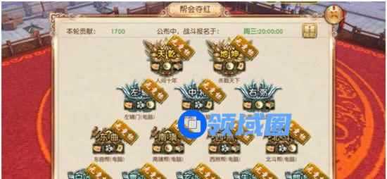 3、宣战时间结束后,系统会根据帮会的本轮贡献值进行排名,取前两名给予挑战资格,分别挑战:第一场、第二场