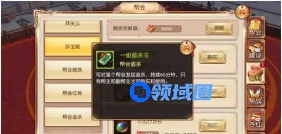 1、帮主和副帮主可以在帮会商店中购买帮会追杀令