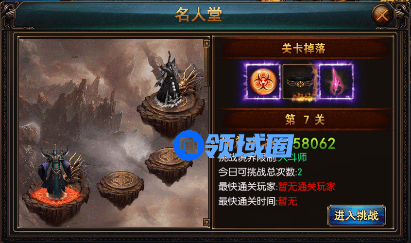 屠龙战神中玩家可以通过挑战名人堂来获取魔环成长与进击所需魔髓与魔珠,并且在名人堂中除了进阶所需的材料之外玩家还可以获得各种高级的装备,绝对是个不可多得的宝地。