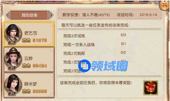 2、师傅可于每日发布任务,徒弟完成任务后师傅即可获得相应奖励