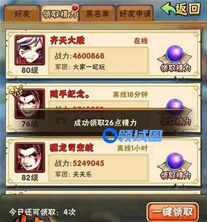 2、好友精力的领取,好友赠送的精力可以不着急领取,在每次巡逻的时候去领取精力即可,避免一次性领取好友精力之后,导致精力达到上限。