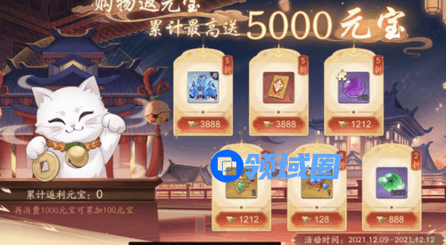 1、在12月9日更新后至12月12日期间,花火商城开放神秘,每日集市会刷新随机的商品,玩家购买后可以获得元宝返利,最高可获得5000元宝。