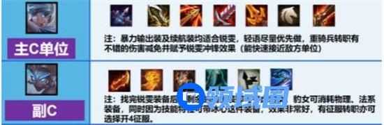 2、装备搭配:优先找锐雯的物理输出装备,多余的输出装分配给副C奈德丽;关键装女妖之爪给到艾瑞莉娅(刀妹);无论什么阵容都少不了前排装备,在输出过多的情况下要记得留意前排装备,给到加里奥或者芮尔。