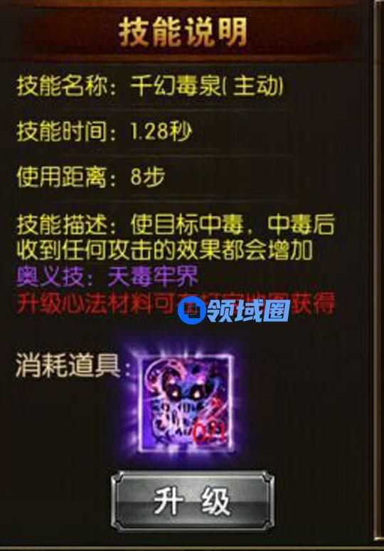 千幻毒泉是道士非常实用也非常有效的一个辅助技能,主要的技能效果分为两方面:
