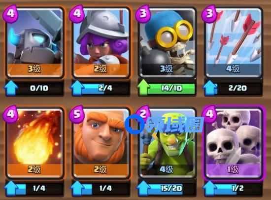 《皇室战争》游戏在做完初期教程后,系统将会从训练营解锁的四张紫卡,并从中随机选择一张送给玩家,而该卡则是新手玩家初期卡组的核心。因此,如何依靠初期核心卡来搭配卡组则将影响战斗的胜负。下面小编将为大家带来首抽骷髅军团的搭配卡组,希望能为新手玩家带来帮助。