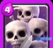 骷髅军团:这套卡组核心,进可攻,退可守,但基本用来防守,进攻机会不多,因为每一个小骷髅实在太弱。用这张卡之前最好先骗出对手箭雨等AOE,然后下一波,赚取节奏和圣水差。只是骷髅军团比较怕对面的AOE法术,如箭雨、火球或是人形AOE,如女武神或是飞龙。