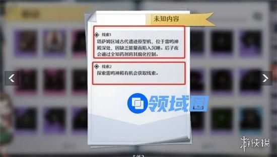 如上图所示,玩家需要这张卡片可以攻打雷鸣神殿获取,只需要点一下卡片就能够看到背面所给的线索。
