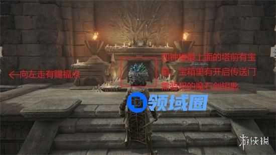 (2)四钟楼最上面这个塔前有个宝箱,宝箱里面有魔石剑钥匙;并且塔旁边就是赐福点
