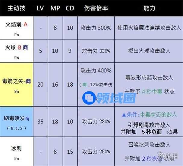 剧毒:每1秒攻击力10%的持续伤害,移动速度-30%。