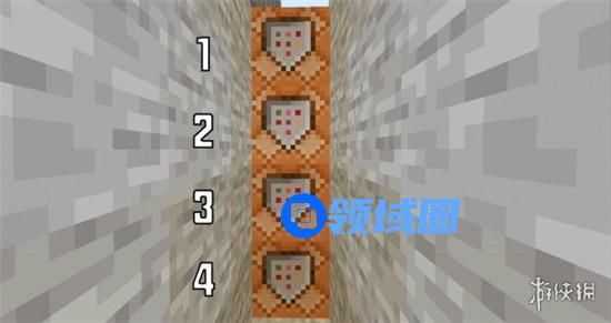 本次一共需要用到4个命令方块,在山洞中找到一个合适的位置,向下挖四格,并如图所示放置命令方块