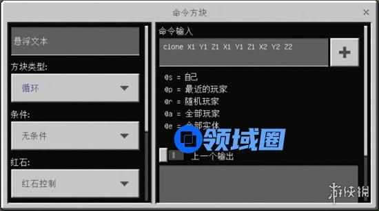 接下来就是输入指令的环节啦,在1号命令方块中输入