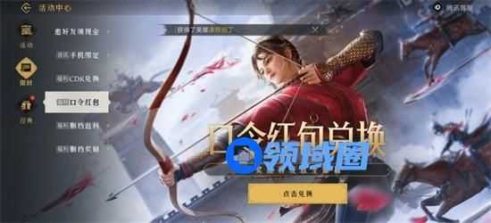 游戏主界面,点击右上角的“活动-限时-口令红包”,点击“前往兑换”,选择输入口令,再点击“兑换”即可。
