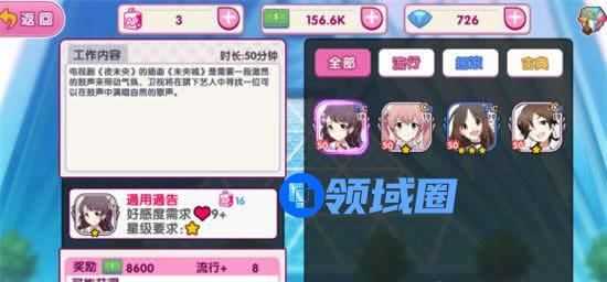 通告的难度主要体现在接取条件上,接取条件包括:好感度、称号、星级三点。歌手的需要同时满足通告对应的3点要求才能接取。