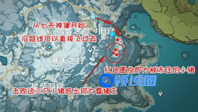 注:被冻住的小猪分布在雪山各处,图中只是标记了够完成任务的数量位置,不代表全部被冻住的小猪位置。